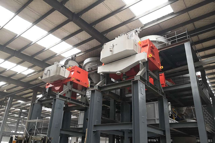 After classification, the qualified product enters a medium-magnetic plate magnetic separator (magnetic field strength 4000–4500 GS) to remove mechanical iron impurities. It then enters a high-magnetic plate magnetic separator (12000–13000 GS) to further remove all mechanical iron and some weakly magnetic iron. The product then passes through a vertical ring high-gradient magnetic separator (electromagnetic, magnetic field strength 1.4T, two units connected in series) for deep iron removal.
