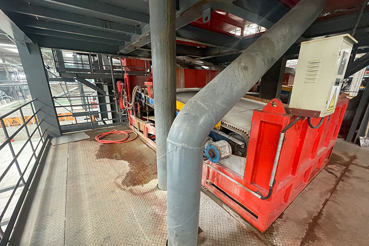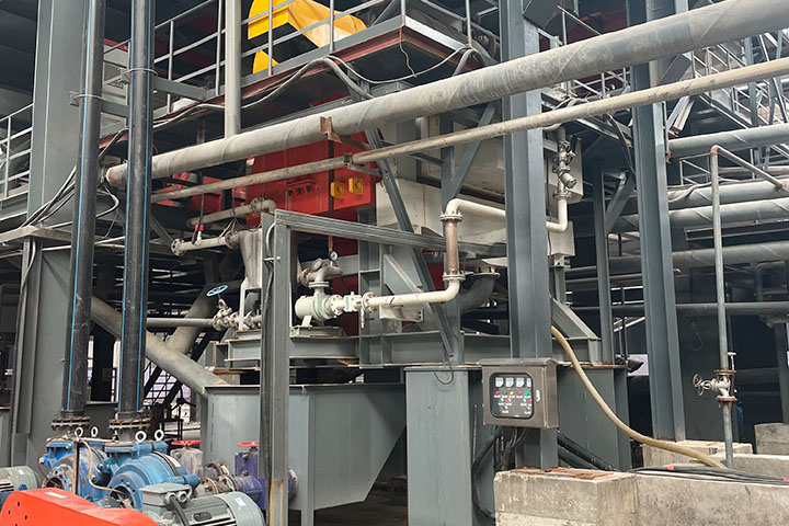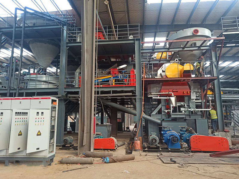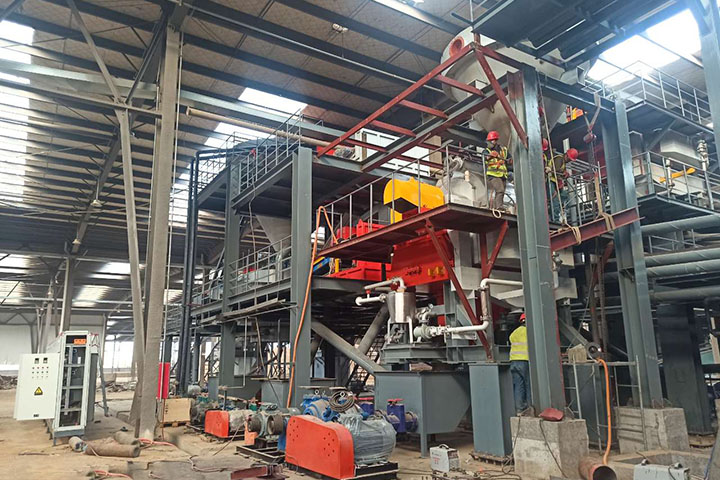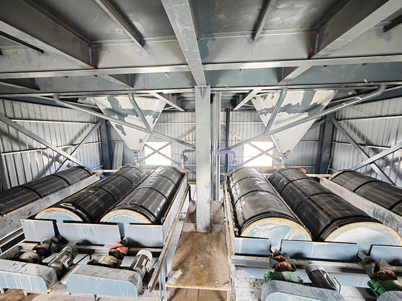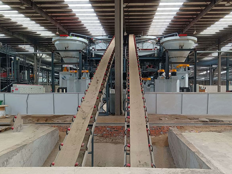The iron-removed product enters a thickening hopper for concentration and is then conveyed to the flotation section, where flotation completes the final dealuminization, de-ironization, and silicon extraction processes. The flotation product passes through a dewatering screen to reduce moisture content before being transported by belt conveyor to the finished product area for the next step.