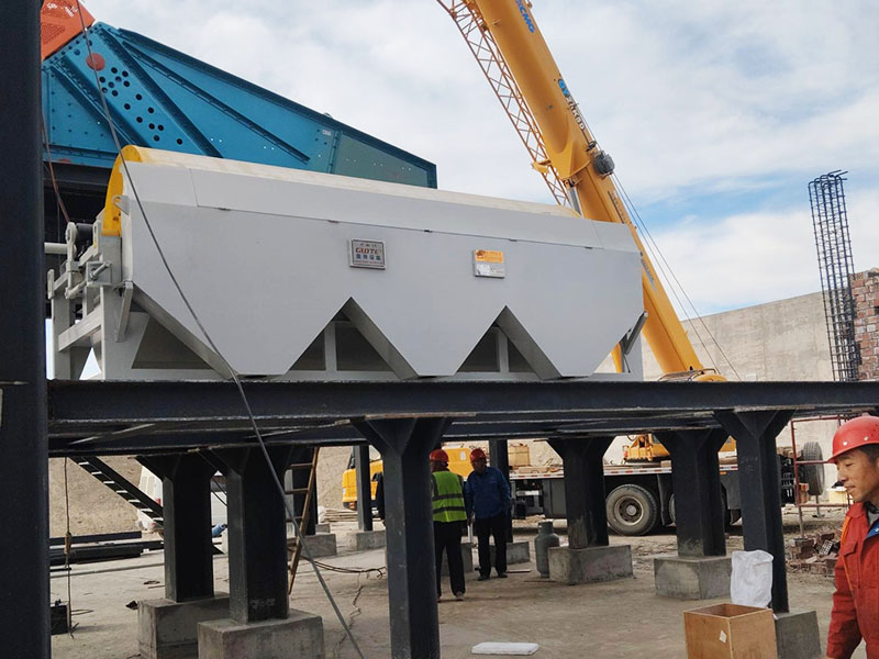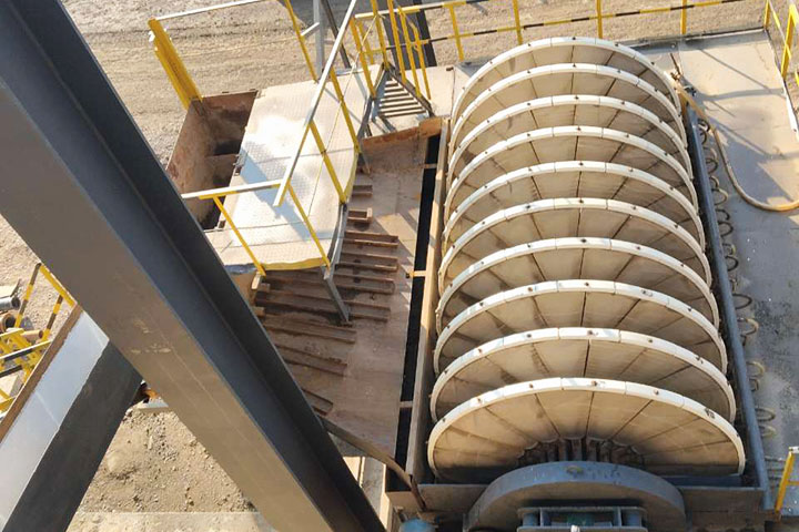 The resulting iron ore concentrate is conveyed through a pipeline to a thickening tank containing a thickener. The concentrated slurry settles to the bottom of the tank and is collected by a thickening rake at the discharge port. It then passes through a vacuum filter for dewatering. The microporous filter separates the solid and liquid content of the iron ore slurry. The dewatered water can be recycled as beneficiation water. The iron ore concentrate is then transported by conveyor to the finished product storage yard.