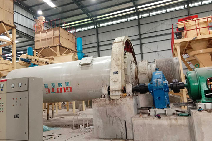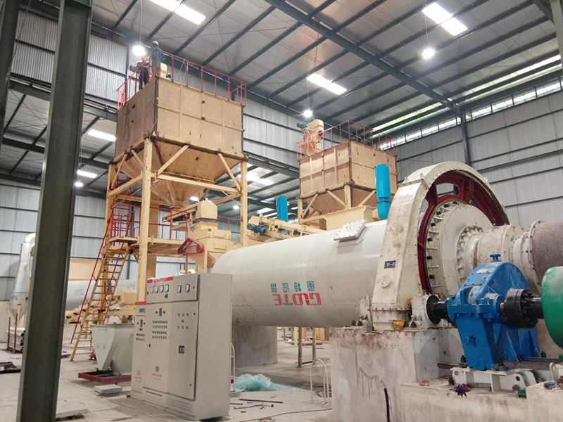The raw quartz ore crushed to ≤200mm in the stope was transferred to the raw ore stock dump of the processing plant. The loader shoveled the raw ore into the raw ore bin, then the raw ore was fed to the belt conveyor by the chute feeder and transported to the autogenous mill for grinding. The ore discharged from the mill was screened by a linear vibrating screen. Undersize product was pumped by a wear-resistant rubber pump to the hydraulic classifier for classification. Oversize product on the screen and the underflow product of the hydraulic classifier were returned to the overflow ball mill for regrinding. The discharge of the ball mill flowed to the linear screen through the chute to form a closed-circuit grinding. At the same time, the chute was equipped with an electromagnetic iron remover to remove mechanical iron.