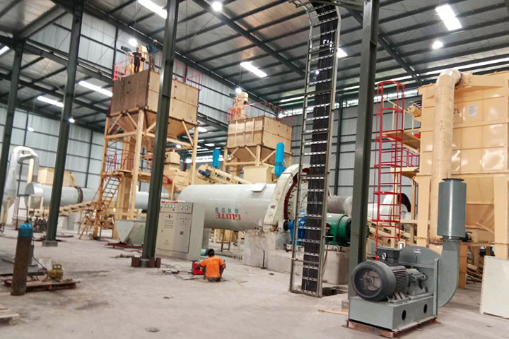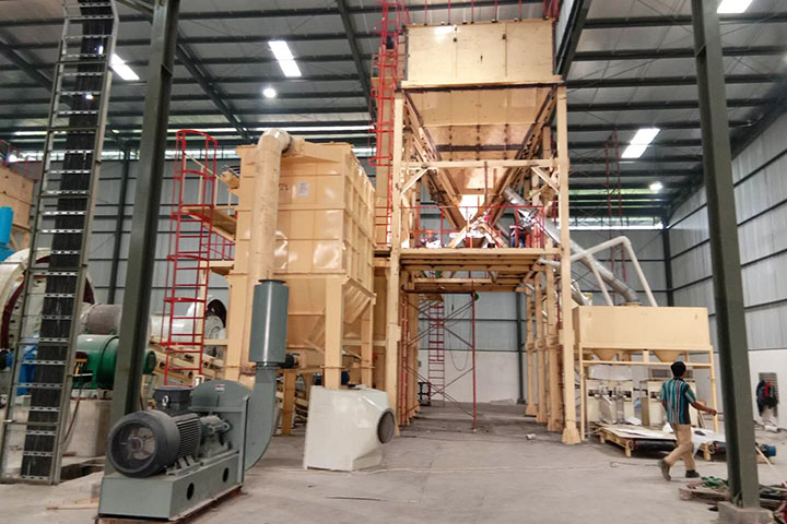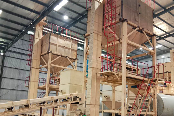 The drying system adopted a tri tunnel rotary dryer with a dust removal system. The loose material was fed into the feeder sucked into the dryer by the high-temperature hot airflow for drying. The dried material entered the discharge system with the airflow, and then was discharged into the cooling system from the closed air discharger. The cooled dry materials entered the baler through the closed-air discharger for packaging, and the packaged finished products were sent to the finished product warehouse for sale.