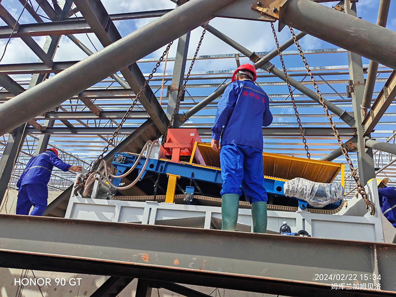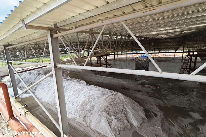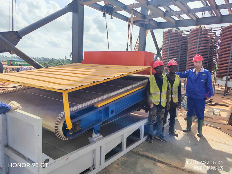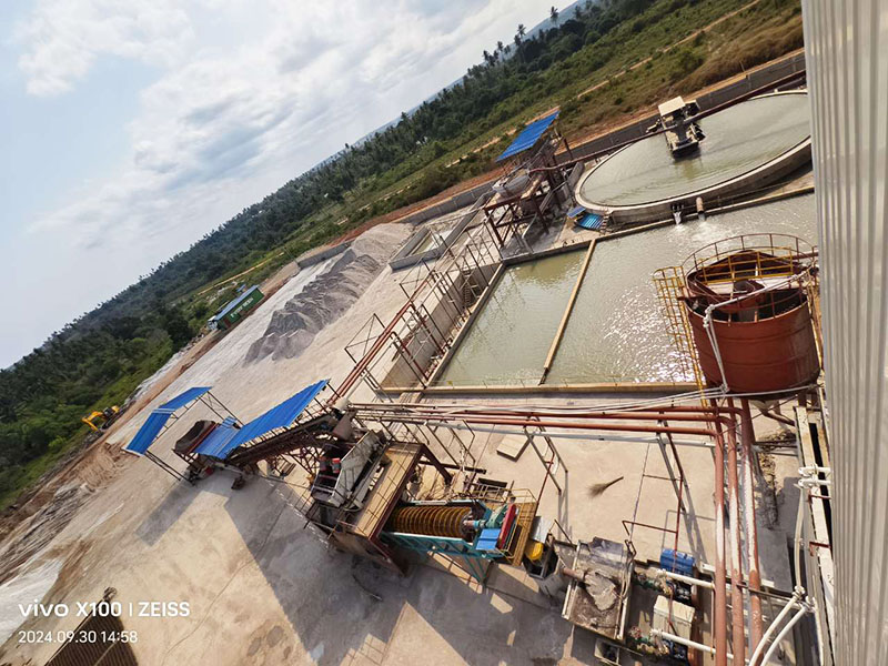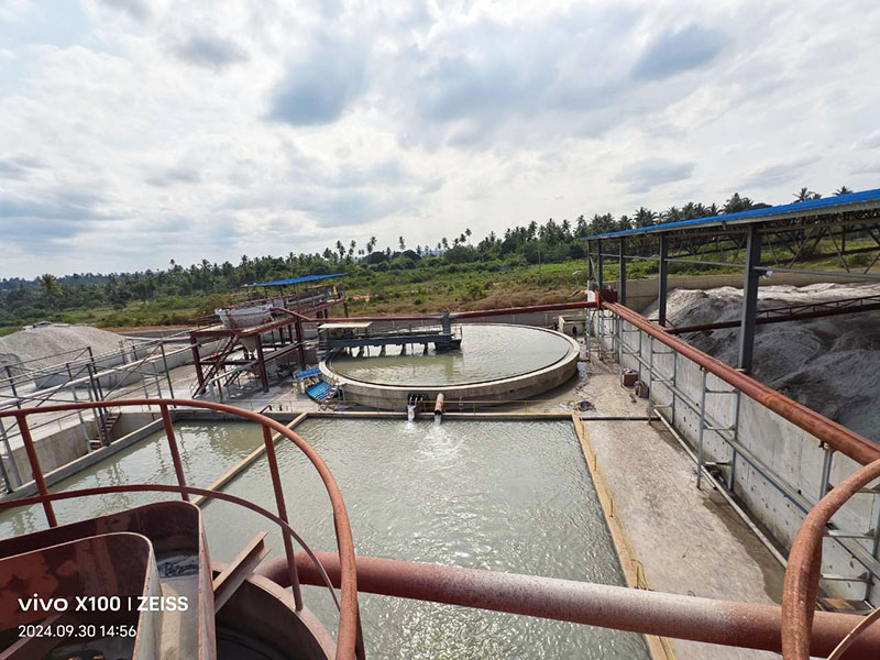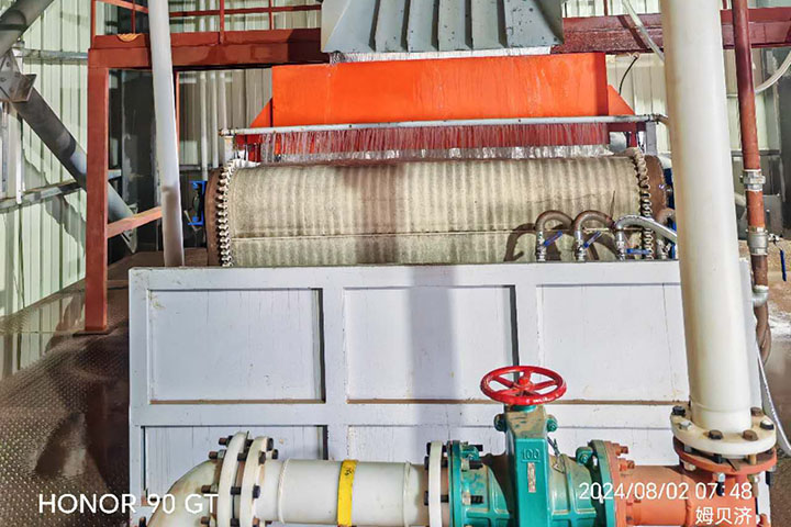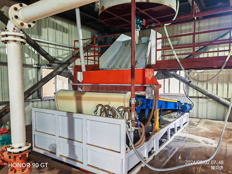 Magnetic separation and dehydration: The materials that come out of the drum screen and hydraulic classifier are qualified particle size materials. The qualified particle size materials enter the magnetic separation stage. Under the plate magnetic separator with a magnetic field of up to 10000GS-12000GS, all iron impurities and some weak magnetic iron are completely removed. Finally, the qualified materials are dehydrated by the dehydration screen and then put into the pile shed. The mineral wastewater generated by the entire production line is transported to the thickening tank with a thickener for purification, which can be recycled.