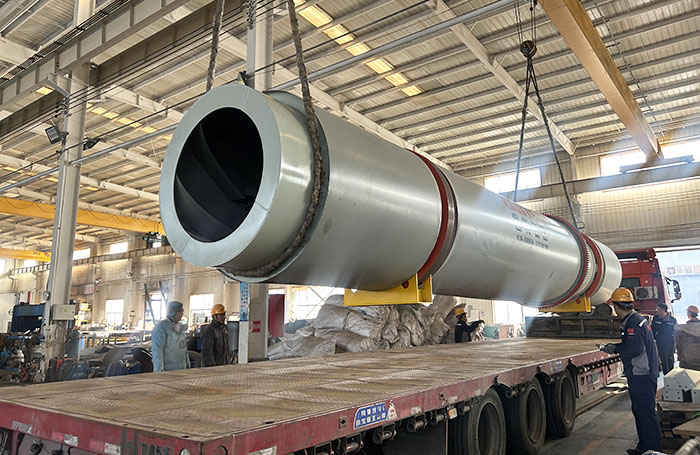 The dryer shipped this time is a rotary dryer, which adopts a high-efficiency heating method and is equipped with an innovative lifting plate system inside the drum to ensure full contact between the material and the hot air, resulting in high heat exchange efficiency. The entire system is equipped with an energy-saving hot air furnace and a high-efficiency dust removal system, ensuring stable operation, low energy consumption, and compliance with environmental standards.