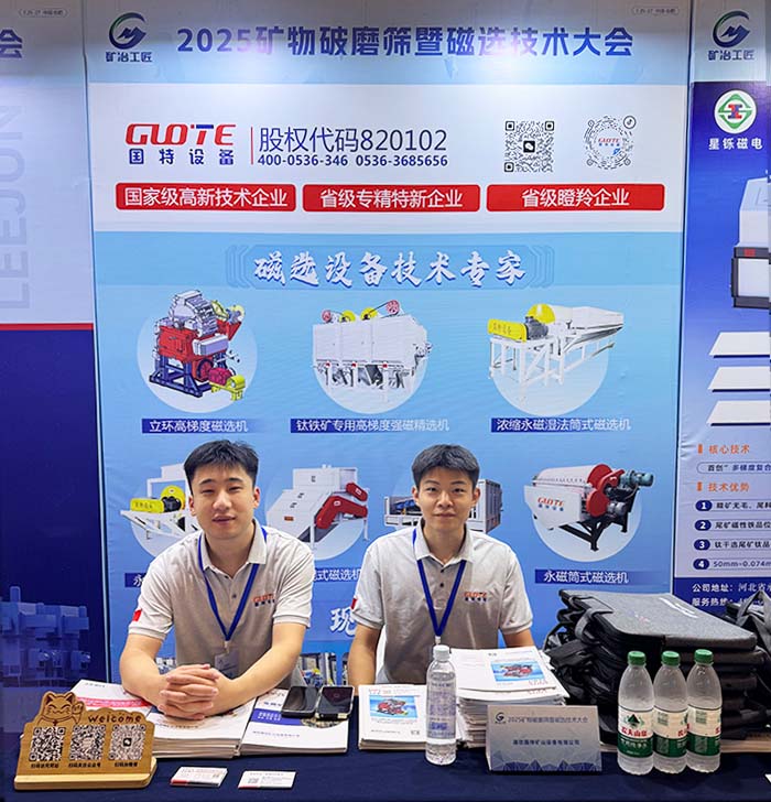 2025-08-20 Guote Views (419) +Read MoreThe 2025 (15th) Mining Science and Technology Conference was held at the Wuhan Eurasia Convention and Exhibition International Hotel from August 20-22, 2025. Over 100 industry experts, scholars, and engineers were invited to share cutting-edge research results, exchange technical application experiences, and jointly identify key technological breakthroughs for the 14th Five-Year Plan and outline innovative development directions for the 15th Five-Year Plan. Guote Equipment has been dedicated to the research and application of magnetic separation technology for many years. At this conference, we showcased our cutting-edge technological achievements, committed to achieving new breakthroughs in the separation efficiency of both metallic and non-metallic ores.