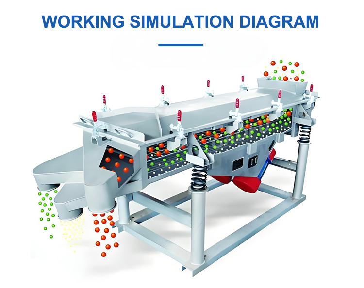 [Overview]:Linear vibrating screen is a screening device driven by dual vibration motors. Its core feature is that the material moves linearly on the screen surface in a jumping manner, achieving efficient screening and grading. The screen machine drives the screen body to vibrate linearly through the centrifugal force generated by the eccentric block, which is suitable for non-sticky particles or powdered materials. The equipment adopts a modular design and supports 1-5 layers of screen configuration. It can screen 2-7 products of different particle sizes at the same time. The screening accuracy is as high as 96% or more, and the fully enclosed structure effectively prevents dust from spilling.