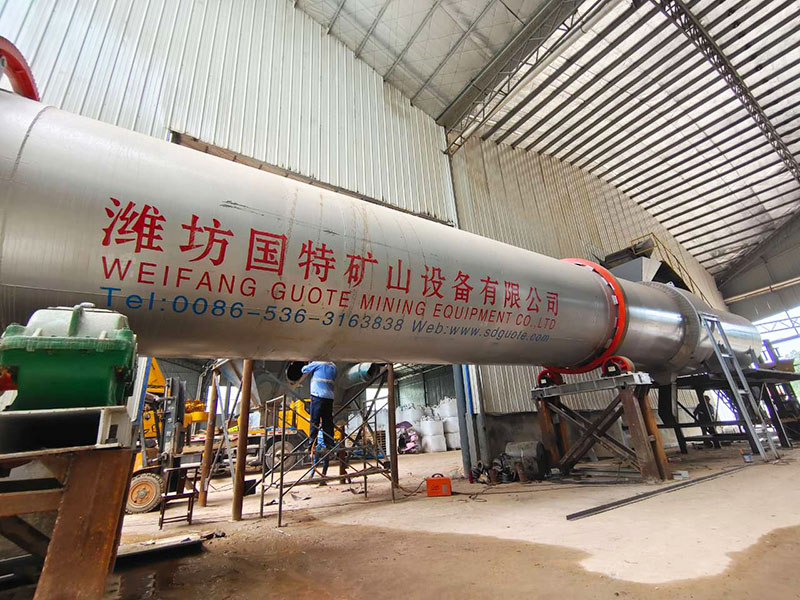 [Overview]:The single-drum dryer for mining is a horizontal rotary drum drying device. The drum's rotation drives an internal lifting plate to repeatedly distribute the material, allowing it to fully engage with the hot air flow and achieve dehydration. The main body consists of a single drum, mounted at an angle (typically 3–5 degrees), supported by rollers at both ends for rotation. The feed end is connected to a hot air furnace (fueled by coal, gas, or oil), and the discharge end is equipped with a dust removal system.