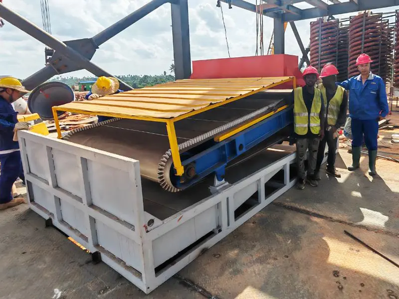7、The ore is eauipped with a uniform feedina device: the tailinas are eauipped with a manetic device for automatic cleaning and adsorption.
