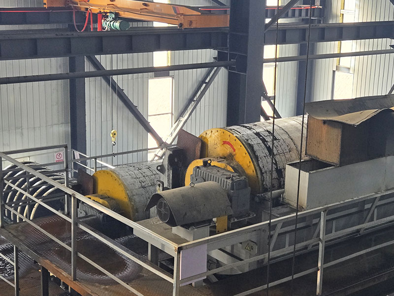 The 0-12mm iron ore particles screened by the vibrating screen (produced by the first step-iron ore crushing-the last stage) are evenly fed into the ball mill for grinding, and the powder is screened by the post-grinding screen. Among them, the iron ore powder that does not meet the requirements is sent back to the ball mill for further grinding; the ore powder that meets the requirements of the next level of production is sent to the next section.